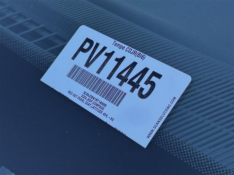 Red Hot Pearlcoat 2024 Jeep Compass 4WD 4D Sport UtilityCertified. Clean CARFAX. Odometer is 26160 miles below market average! 24/32 City/Highway MPG2.0L I4 DOHC 8-Speed Automatic 4WD.At Tempe CJDR and Kia, we are committed to providing our customers with SAFE and RELIABLE vehicles at the RIGHT PRICE! All pre-owned vehicles are subject to an extensive 110 point inspection, and ALL reconditioning costs are already included in the price of the vehicle. *Tempe $1,000 Finance Bonus Cash discount only available for standard prime lender conventional financing arranged through Tempe Dodge OAC. We reserve the right to determine customer eligibility for the $1,000 Tempe Finance Bonus Cash discount.FCA US LLC Certified Pre-Owned Details:* Vehicles Up to 75,000 Miles and/or 5 Model Years. 24-Hour Towing & Roadside Assistance, Car Rental Allowance, CARFAX® Vehicle History ReportTM and an Introductory 3-month Subscription to SiriusXM® Satellite Radio & Certified Warranty Upgrades* 125 Point Inspection* Limited Warranty: 3 Month/3,000 Mile (whichever comes first) after new car warranty expires or from certified purchase date* Warranty Deductible: $100* Vehicle History* Powertrain Limited Warranty: 84 Month/100,000 Mile (whichever comes first) from original in-service date* Transferable Warranty* Roadside Assistance