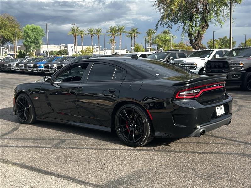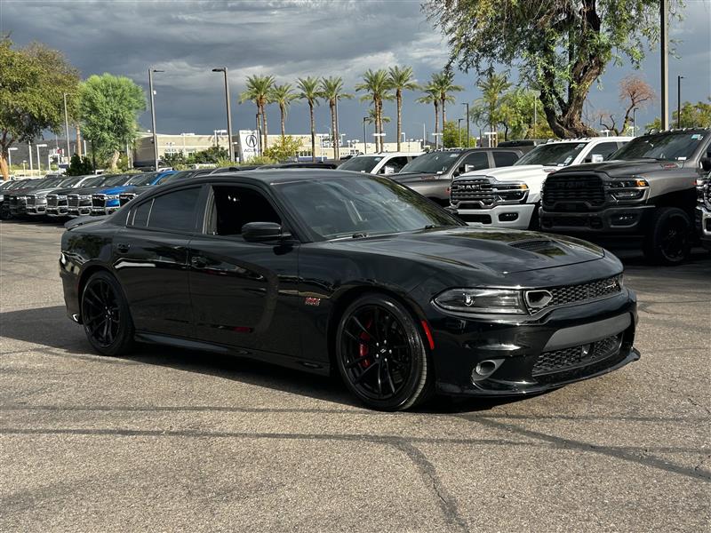 Pitch Black Clearcoat 2023 Dodge Charger RWD 4D SedanCertified. CARFAX One-Owner. 15/24 City/Highway MPGSRT HEMI 6.4L V8 MDS 8-Speed Automatic Black Artificial Leather.At Tempe CJDR and Kia, we are committed to providing our customers with SAFE and RELIABLE vehicles at the RIGHT PRICE! All pre-owned vehicles are subject to an extensive 110 point inspection, and ALL reconditioning costs are already included in the price of the vehicle. *Tempe $1,000 Finance Bonus Cash discount only available for standard prime lender conventional financing arranged through Tempe Dodge OAC. We reserve the right to determine customer eligibility for the $1,000 Tempe Finance Bonus Cash discount.FCA US LLC Certified Pre-Owned Details:* Transferable Warranty* Vehicles Up to 75,000 Miles and/or 5 Model Years. 24-Hour Towing & Roadside Assistance, Car Rental Allowance, CARFAX® Vehicle History ReportTM and an Introductory 3-month Subscription to SiriusXM® Satellite Radio & Certified Warranty Upgrades* 125 Point Inspection* Powertrain Limited Warranty: 84 Month/100,000 Mile (whichever comes first) from original in-service date* Warranty Deductible: $100* Limited Warranty: 3 Month/3,000 Mile (whichever comes first) after new car warranty expires or from certified purchase date* Vehicle History* Roadside Assistance